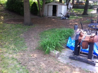 After doing the trenching project in the backyard it left mounds of clay/dirt everywhere. This weekend I borrowed a roto-tiller and spent all day outside with that thing and a hoe to spread it around in an attempt to make the ground a bit more level. Next step, planting grass (all I have currently is dirt and weeds).