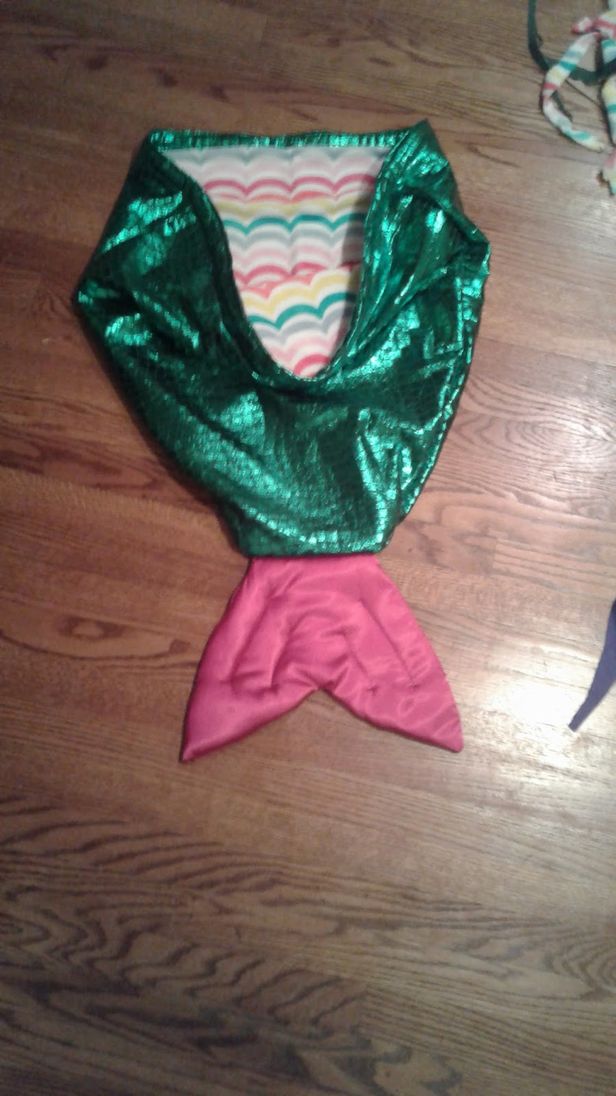 The inside of the tails are lined with a super soft fleece fabric. The fins have batting inside them so they aren't as "floppy". I used freezer paper to create my own pattern...as you can probably tell, definitely not professional but made with a ton of love.